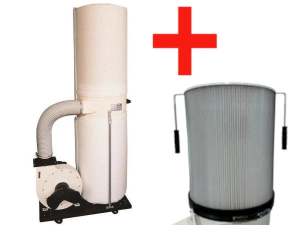 Pair the Oltre OT-CF-510A 500mm x 610mm 1 micron canister filter with the OT-DC-1500 240V 2HP dust collector (also known as FM300) for a high-performance upgrade that replaces the standard needle-felt top bag + plastic bottom bag setup.